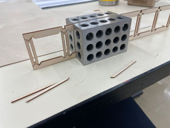 Our goal for this final model was to develop a more sophisticated method of producing a kit of repeatable parts with systematic interlocking joinery. Establishing a basic form, we prioritized trusses as our structural and visual focal point. We decided to reuse the interlocking teeth joints of previous models by adding indentations only when necessary, locking two elements together. This would further prescribe our model to a basic configuration consisting of four truss walls with unique bracing to counteract the resulting applied forces.