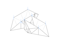 This project is an investigation about how a seemingly “weak” material is actually strong through a series of creases. These creases distribute the weight. Through these iterations of creases we created strong nodes that distributed the weight evenly. We first investigated creases through the iterative process of modules, with each module increasing in complexity of creases, and distribution of forces. Once we finished this modular exploration, we then advanced our strongest module to create a surface of interlocking modules. With each different module, and with each puzzle-locking module we weight tested to see how strong the formation is. Through this process we learned and saw the distribution of forces in real time. Finally, we tried a stiffer paper to push our logic and module to the next extreme. From here we are able to extrapolate that with the right material, this module and system would create a strong structural surface.