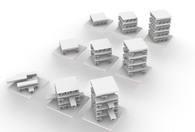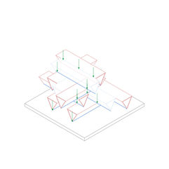 Reflecting on the lack of integration of our equilibrium model, our reciprocal model structural system is composed of hollow cylindrical modules in triangular prisms, arranged horizontally and stacked vertically. These cylindrical modules serve both as structural elements and enclosure spaces. When examining the cross-section, each layer of inverted equilateral triangles transforms the originally stable structure into a more precarious one, creating a sense of lightness and suspension. The sides of the triangular prisms form horizontal platforms, with loads transmitted down through the compression forces between the side edges and faces, distributed through the tensile forces in the faces, and compression forces between side edges in contact with each other in the layers below.
