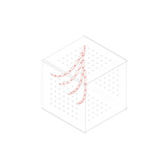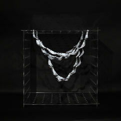 This project explores compression-driven spatial form through a custom-designed chain–membrane system. Each repeatable module forms a semi-rigid loop secured by a screw-like connector and a secondary hook, allowing directional coupling and controlled force transmission. A calibrated perforation pattern establishes measurable attachment points, enabling variation in density and hierarchy without altering the unit itself.