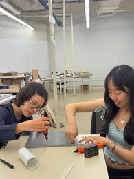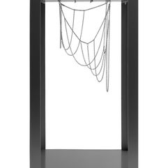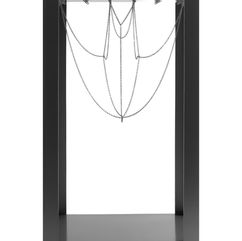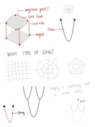 This project explores compression-only structures through a catenary model. The base is constructed from wood and wrapped in silver-grey vinyl, providing a clean and sturdy frame. Above, a 6x6 grid is drilled with holes to accommodate hooks, from which steel chains are suspended. These chains follow the natural curve of a catenary arch, responding to gravity to form various curves.