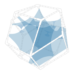 Our membrane model explores modulation as a repeatable system where force distribution shapes spatial condition through iteration. Two rotated hexagonal shapes generate a bounding box. The clamp system evolves from corner-only to continuous edge support. Fabric operates proportionally within this system.
